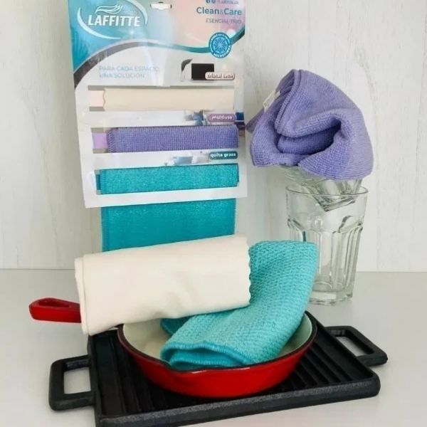 Paños Esencial Trío Cristal/Multiuso/Quita Grasa